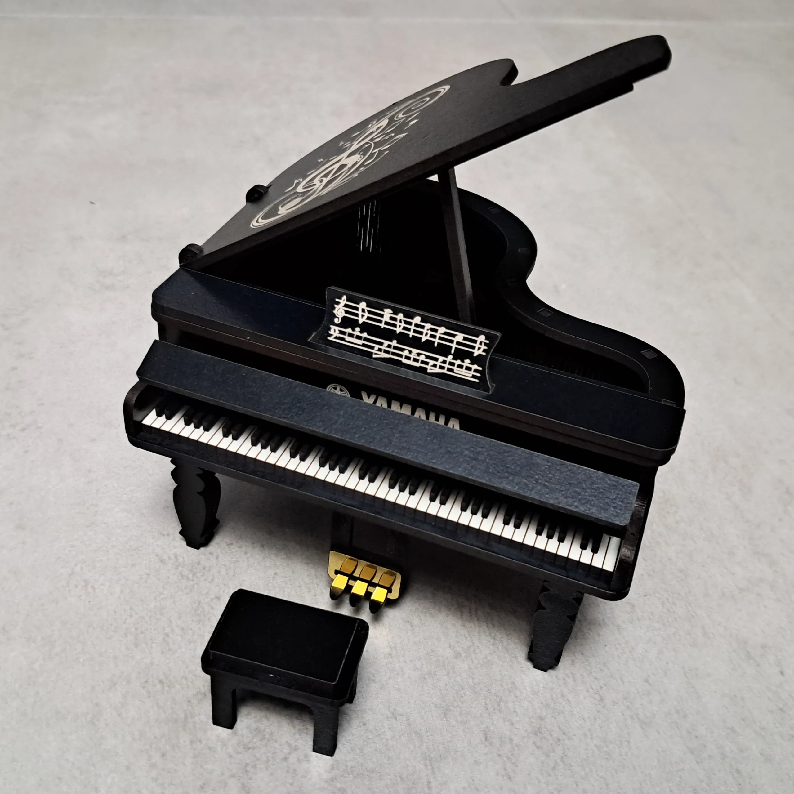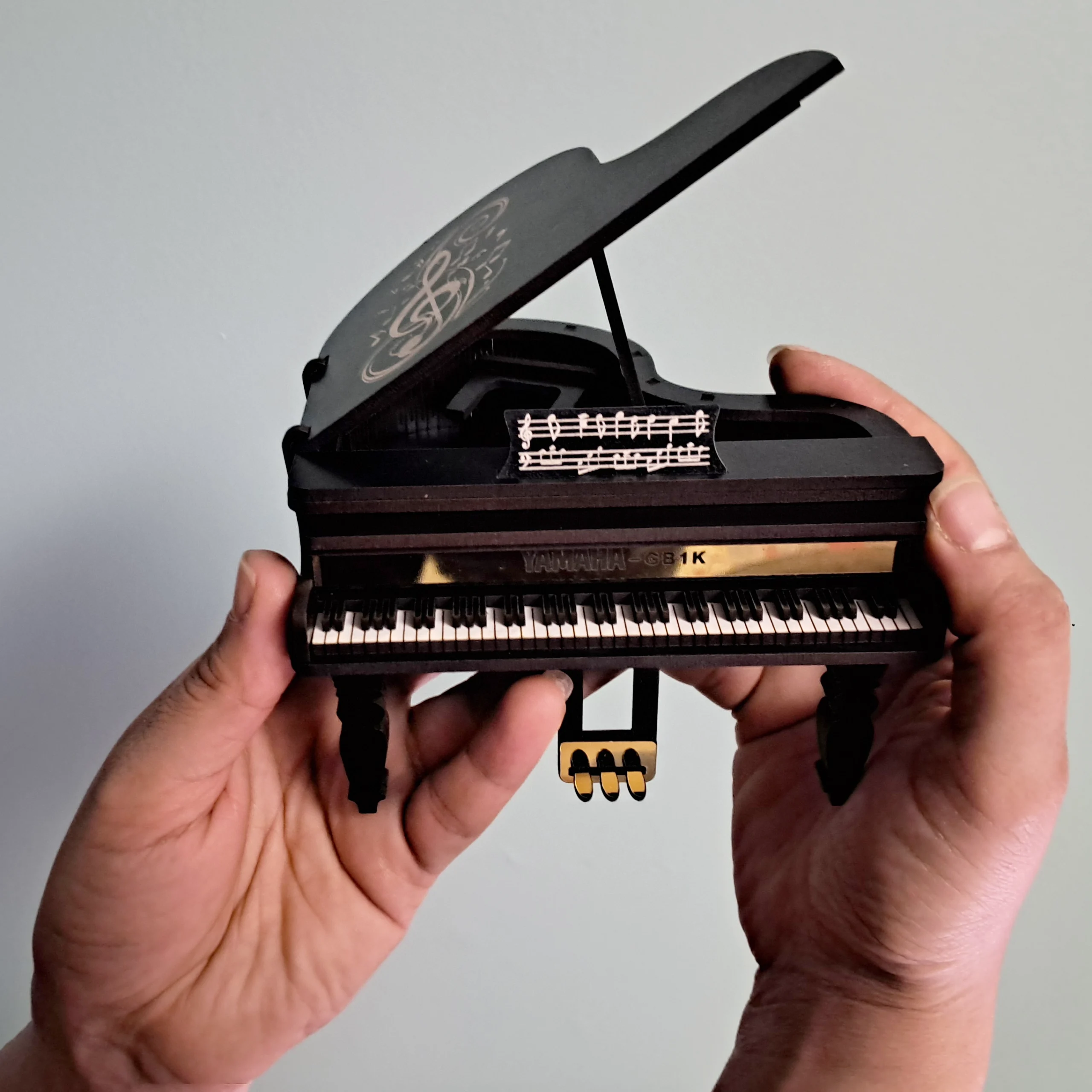 طراحی این دکوری برگرفته از پیانو بزرگ رویال است که به شکلی مینیاتوری و ظریف ساخته شده است. سطح چوبی صیقلی و جزئیات دقیق بدنه، آن را به یک اکسسوری دکوری خاص و هنری تبدیل کرده است.