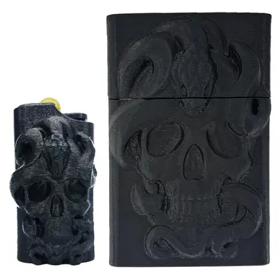 - شامل فندک با طراحی اسکلت و مار و جاسیگاری با قابلیت استفاده به عنوان جعبه پاکت سیگار بزرگ، جاسیگاری نخی و قوطی و جعبه لوازم کوچک.