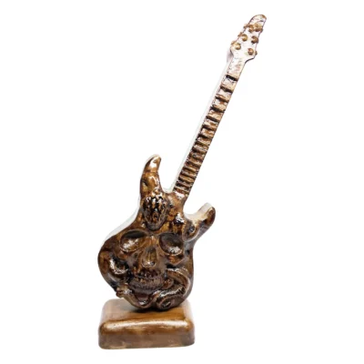 ماکت دکوری گیتار برقی اسکلتی طرح چوب یک اکسسوری دکوری خاص و چشمگیر به سبک ساز و موسیقی راک و متال است که با الهام از گیتار الکتریک، اسکلت جمجمه انسان و مار طراحی شده است. این ماکت با جنس سنگ صنعتی و رنگآمیزی طرح چوب، بهعنوان یک دکوری رومیزی به سبک موسیقی راک و متال شناخته میشود و مناسب برای خانمها و آقایان علاقهمند به موسیقی راک و هوی متال است. این ماکت برای استفاده در کافهها، آتلیهها، آموزشگاههای موسیقی و فروشگاههای لوازم موسیقی ایدهآل بوده و جلوهای خاص به دکوراسیون محیط میبخشد. همچنین، این محصول با قیمت مناسب و امکان خرید تک و عمده عرضه میشود و میتواند یک هدیه عالی برای دوستداران این سبک موسیقی باشد.