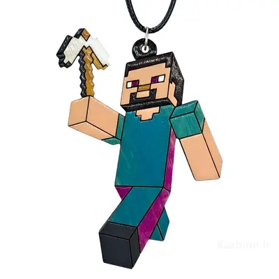 پلاک این گردنبند با الهام از شخصیت معروف بازی ماینکرفت طراحی شده؛ مردی با لباس آبی و آیتمی شبیه فلش که حس اکشن و ماجراجویی بازی را تداعی میکند.